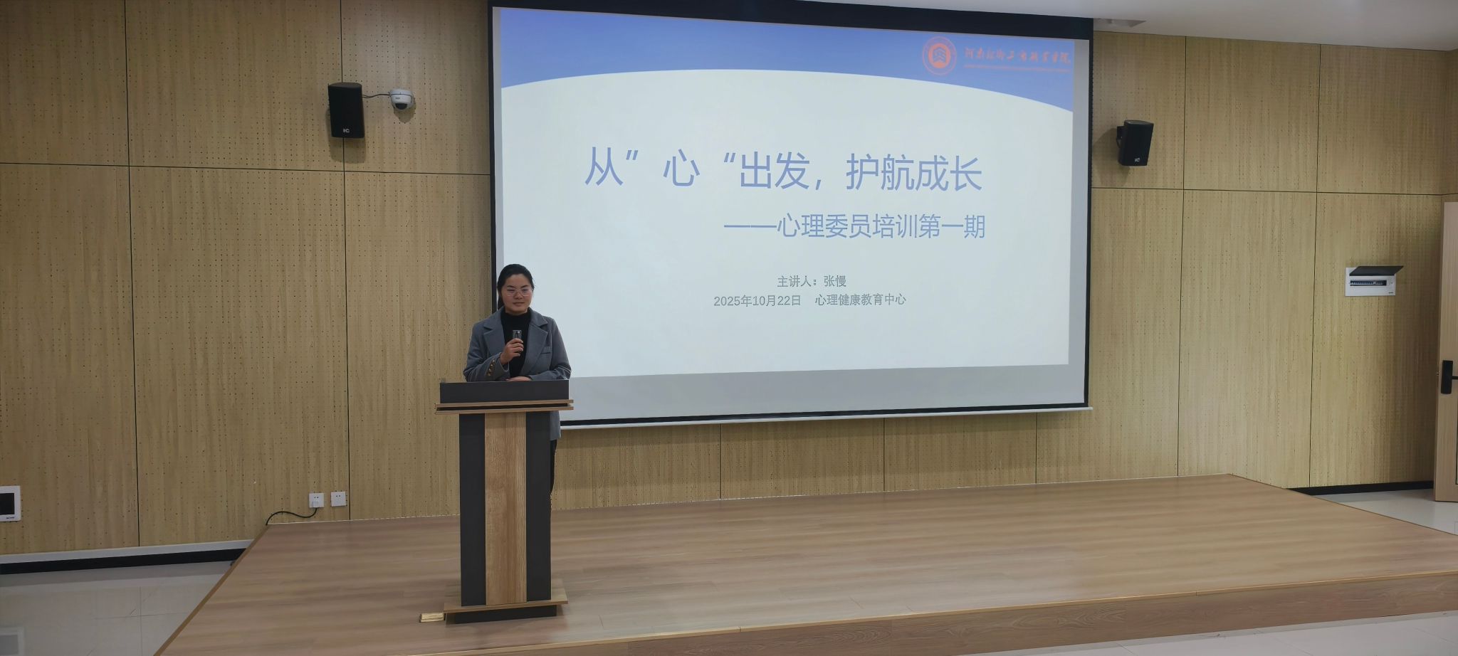 为深入贯彻落实立德树人根本任务,进一步加强校园心理健康教育工作队伍建设,提升班级心理委员的专业素养与履职能力,切实筑牢校园心理健康防线,10月22日下午,学生处心理健康教育中心张慢老师以“从‘心’出发,护航成长”为主题,为全校班级心理委员开展专题培训。