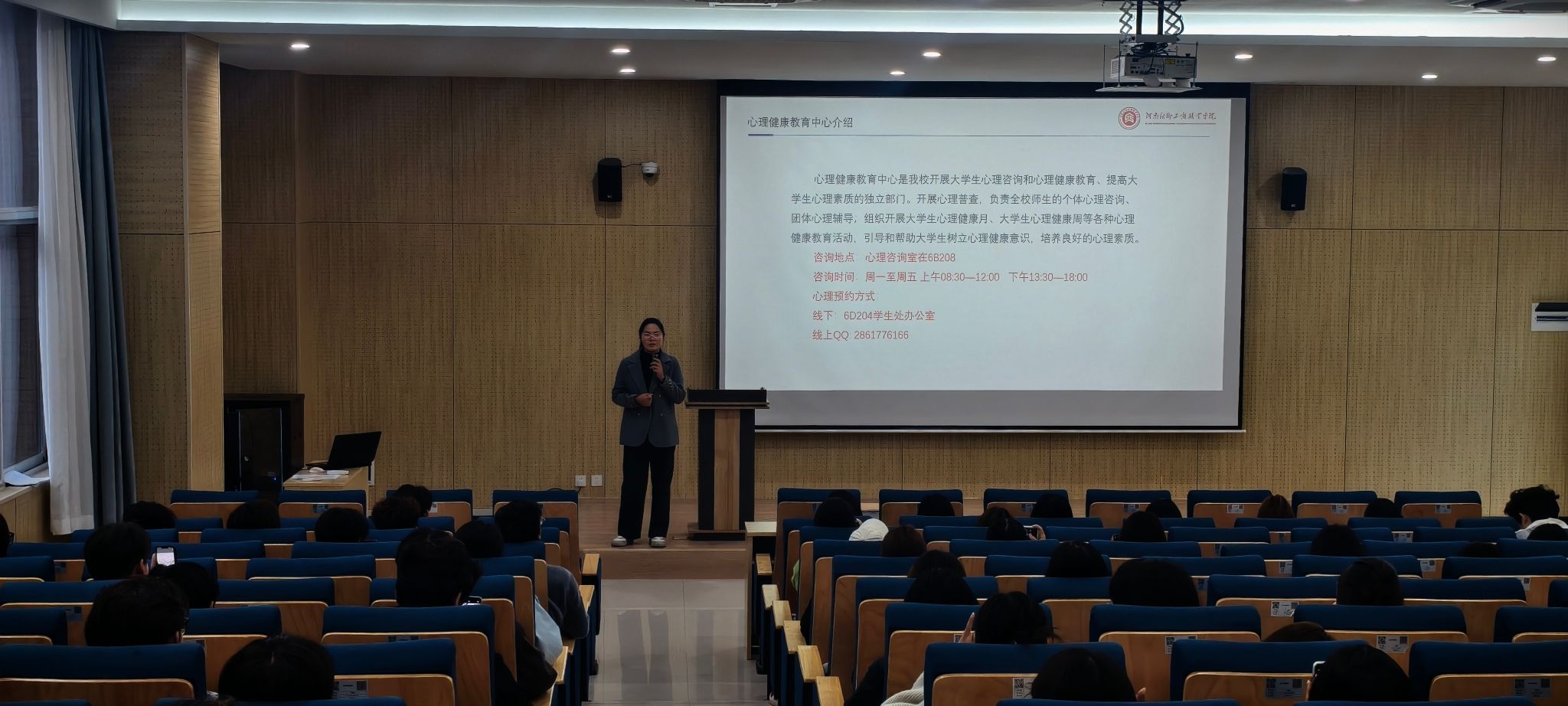随后,张慢老师围绕“大学生心理问题的识别”展开详细讲解。她讲述了心理问题的分类,针对每一类问题,张慢老师都传授了相应的应对方法,包括如何安抚处于情绪困境中的同学、如何识别危机信号并及时上报等,为心理委员们的工作提供了切实可行的行动指南。
