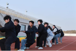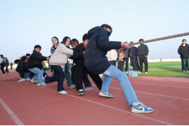 下午14时,运动会正式拉开帷幕。赛场上,5个趣味项目各具特色、精彩纷呈。“合力建塔”项目中,队员们通过绳索精准控制吊钩,小心翼翼地将积木逐层堆叠,在默契配合中挑战搭建高度与速度,展现了极强的专注力与协作力;“珠行万里”赛道上,U型槽接力传送乒乓球的过程紧张刺激,队员们屏气凝神、衔接有序,用耐心与细心确保小球平稳前行,充分诠释了“团结就是力量”;“竞速毛毛虫”环节,8名队员骑乘充气毛毛虫协同奋进,迈着整齐的步伐完成30米往返跑,呐喊声、欢呼声此起彼伏;“一圈到底”项目里,队员们手拉手紧密相连,在不松手的前提下灵活传递呼啦圈,用智慧与协作突破障碍;拔河比赛中,6男4女组成的参赛队伍全力以赴、奋勇拼搏,双方你来我往、势均力敌,展现了顽强不屈的竞技精神。