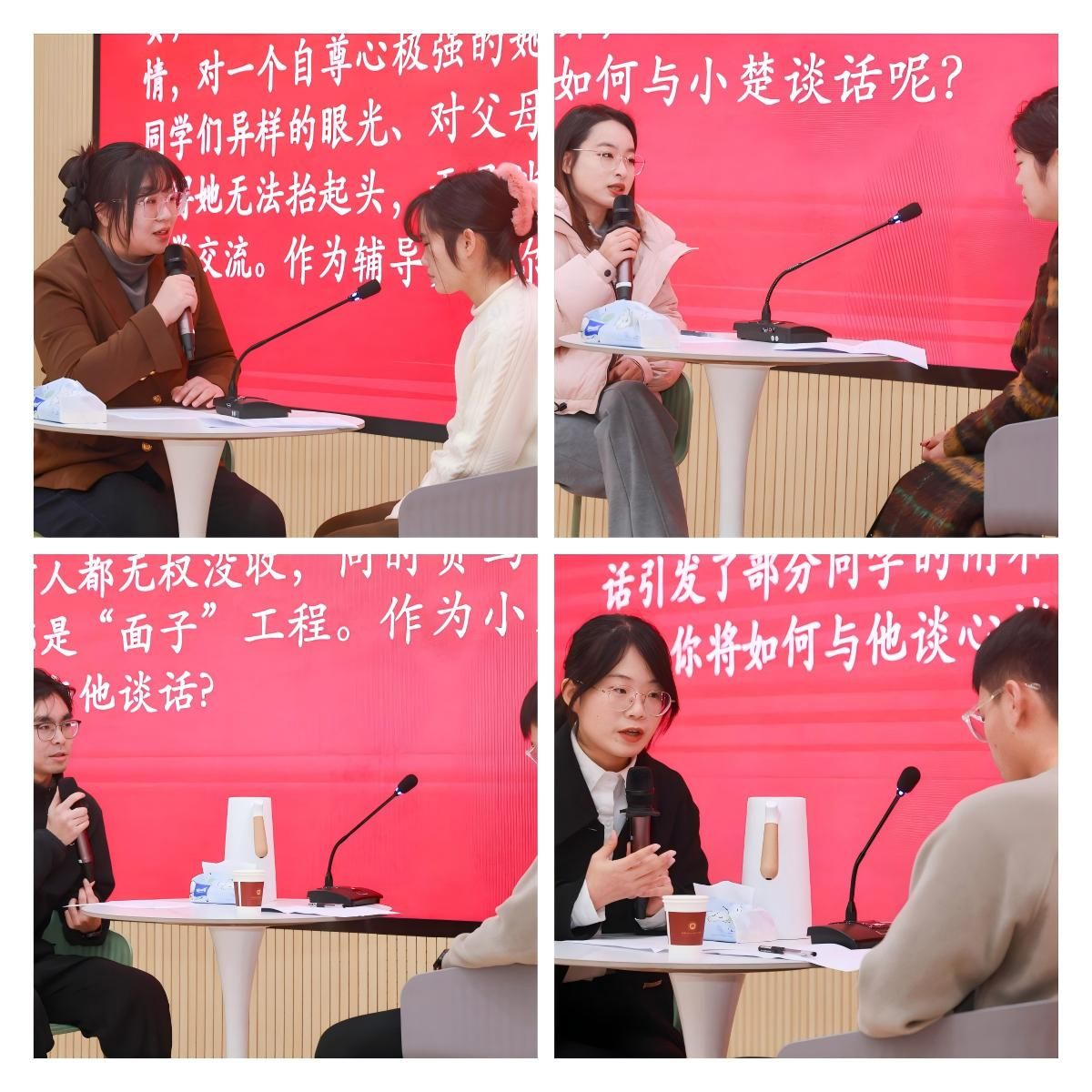 决赛谈心谈话环节以情景再现的形式展开,参赛选手需面对由助演老师模拟的各类突发且棘手的学生问题,在仅有的8分钟内,快速精准把握问题核心,灵活运用专业沟通技巧,针对性提出科学合理的解决方案。比赛过程中,选手们沉稳应对、思路清晰,充分展现出扎实的教育理论功底、丰富的学生工作经验、优良的职业素养以及出色的应急应变能力,赢得现场评委与观摩人员的一致认可。